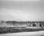 Arlington Heights landmark demolition of 75 foot incinerator, end of explosion, 03/27/1948