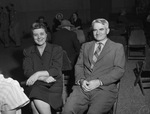 Mr. and Mrs. C. D. Cordry were among the many Fort Worth, Texas, people who attended the anti-Truman Democrats barbecue. Mr. Cordry, right, is wearing a suit and Mrs. Cordry is wearing a blazer and a skirt. Both are sitting on chairs. There are a few unidentified people in the background.