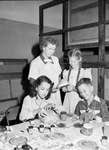 Evaline Sellors with art students (left to right) Jean Kingery, Sue Corder and Larry Garrison.