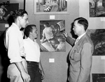 Image shows right, Howard W. Joyner, head of NTAC's Art Department, discussing a painting with Delbert Herron, Dallas, left. The painting reminds Herron of the times he spent on a destroyer escort in the Navy. The painting, in center, is a self- portrait of his time in the Navy. In center, Russell L. Winn, Lubbock, is an art major and an ex-military. Published in Fort Worth Star-Telegram morning edition May 16,1948.