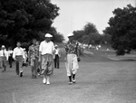 Golfers Bobby Locke (left) and Lloyd Mangrum, walking at the Fort Worth Invitational tournament at Colonial Country Club.