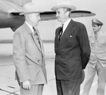 Left to right, Carter and Symington. Mr. Carter and Symington are facing each other while having a conversation. The men are wearing suits and ties with hats.