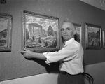 S.P. Biegler with painting at Texas Christian University's (T. C. U.) art department.