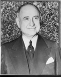 Bust shot of Amon Carter, against a shrubbery background. Mr. Carter is wearing a suit and tie and is smiling.