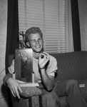 Fort Worth's city golf tournament player Douglas Higgins, Texas Wesleyan College athlete, holding the winner's trophy.