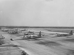 8th Air Force fleet of B-36 bombers parked on tarmac, Carswell Air Force Base, Fort Worth, Texas, 08/09/1948
