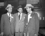Fort Worth Cats in Birmingham for baseball's Dixie Series; Birmingham Mayor W. Cooper Green, John Reeves and Bobby Bragan.