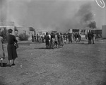 Students and townspeople watching fire at Keller school, Keller, Texas.