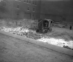 Excavation of site for Fort Worth Star-Telegram building, Fort Worth, Texas. Construction workers and machinery visible.