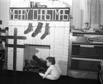 Fort Worth-Tarrant County Tuberculosis Society live Christmas Seal, Bruce McKinley, 18-month old, sitting beside fireplace.
