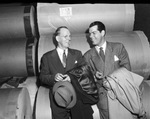 Gordon "Tex" Beneke with his father, F.S. Beneke, tour Fort Worth Star-Telegram plant, 12/11/1948
