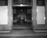 Front entrance and open doors showing interior lobby of Star-Telegram building on 7th St., Fort Worth, 12/23/1948