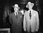 Two unidentified men wearing suits and hats. The man on the left is wearing a double-breasted suit. Both men have handkerchiefs in their suit jacket pocket.