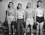 Fort Worth Regional Golden Gloves Tournament; l. to r., [boxer not identified], Don Peacock (middleweight winner), David Tucker (light heavy weight winner), Wesley McDonald, 01/24/1949