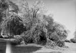 Shots of unidentified house and grounds. A view of nature with trees and tree branches covered in snow. Some of the tree branches rest on the ground. There are outdoor chairs in the background