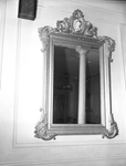 Mirrors at Brinkley home. A mirror on the wall with a decorative frame. The image in the mirroe is a pole in a room