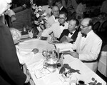 A photograph featuring people seated around a table at the Golden Deeds Banquet, honoring Robert Ellison Harding.