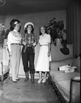 Amon Carter Sr., left, with Judy Montagu, center, and Mrs. Amon Carter, right, at a party for Miss Montagu.