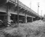 Floodway passage under west end of the Van Zandt viaduct across Clear Fork of Trinity River on W. 7th St.; Corps of Engineers studying whether to raise the bridge or if a new bridge will be necessary for improved Trinity floodway, 07/13/1949