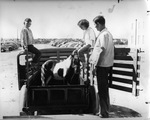 Eddie, Pauline and their father E. P. Waggoner load Shetland pony they won on WBAP-TVs pony contest before heading for Arlington, Texas.