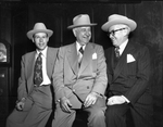 (From left) Charles E. Scripps, Amon G. Carter and Roy Howard. The three men are in the offices of the Fort Worth Star-Telegram. They are dressed in suits and ties.