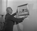 S.P. Biegler in new art gallery in the new Fine Arts Building at Texas Christian University (T. C. U.).