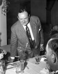 A smiling man leans over a table at the St. Joseph's Hospital Party in Texas Hotel.