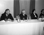 Men and women seated at a table during the St. Joseph's Hospital Party at Texas Hotel.