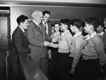 Mayor Deen conferred honorary Fort Worth citizenship on Hugo Norman, 13-year-old first alto in the Mexican Boys' Choir. Giving their approval were Councilman Robert McKinley, right, and the choir director, Rogelio Zarsoza. Published in Fort Worth Star-Telegram morning edition October 14, 1949.