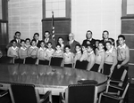 Image of the Mexican Boys' Choir pictured with Mayor Deen, Councilman Robert McKinley and the choir director Rogelio Zarsoza. The other three men are unidentified. Published in Fort Worth Star-Telegram October 14, 1949.
