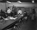 Workers in listing room making labels that are pasted to wrappers on Fort Worth Star-Telegram copies sent to subscribers through the mail.