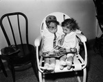 Johnny Tate and Mary Ellen Jacobs, both age 3, at Halloween Party given by Junior Chamber of Commerce for polio children in Fort Worth's City-County Hospital (later renamed John Peter Smith Hospital), 10/31/1949