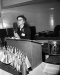 Mrs. Oveta Culp Hobby, publisher of the Houston Post, delivering the president's report to the Southern Newspaper Publishers Association convention held in Mineral Wells, Texas.