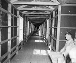 Typical hallway in dilapidated quarters built for prisoners of war in 1943, now being used to house Texas mental patients (State Hospital location not identified), 11/01/4949