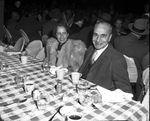 Envelope No. II. Party at Shady Oaks for Associated Press Managing Editors. A couple is seen together at the table. The women on the right has a fur pelt on while the man on the right has a formal siut on.