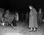 Party at Shady Oaks for Associated Press Managing Editors. Guests at the party looking at a horse with a nicely decorated saddle.