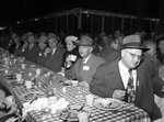Associated Press Managing Editors. Party at Shady Oaks. A long table is shown and multiple people are shown eating outside