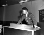 Associated Press Managing Editors Association at Carswell Air Base. A gentleman is standing at a podium. He is dressed formally. He has a pin on his front left jacket pocket