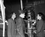 Associated Press Managing Editors Association at Carswell Air Base. Two men and a woman are standing together by a machine