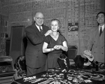Left to right, Charles Vana, Mrs. Burton Carter and Charles Staiger, shown with display of diamonds.