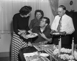 Gordon "Tex" Beneke and wife visit his parents, Mr. and Mrs. Frank Beneke, for Thanksgiving dinner in Fort Worth, 11/27/1949