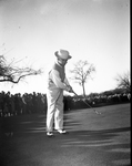 Bob Hope Golf match. Series of shots of golf match. Bob is shown watching the ball after the shot he just took. The crowd watches the shot.