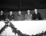 Number I. Dinner for General Dwight D. Eisenhower, given by the Chamber of Commerce. This picture shows 5 men standing for the picture. The two left of Ramey are unidentifiable and to the right of Ramey is Amon Carter and Eisenhower.