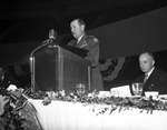 Number I. Dinner for General Dwight D. Eisenhower, given by the Chamber of Commerce. Shown is Roger Ramey at the podium mid speech with an unidentified man to his right.