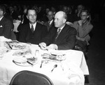 Number II. Dinner for General Dwight D. Eisenhower, given by the Chamber of Commerce. The main viewpoint of this photo is two men sitting at the table. They have already finished their food.