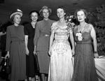 Party given by Mrs. J. Lee Johnson III for Mrs. Dwight D. Eisenhower. Another group of women is shown. To the middle right in the white dress is Mrs. J. Lee Johnson III.