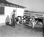 G. R. Fain hopes to increase his diary herd to 30 or 40 cattle. He is shown in the lot with the fall calf crop of young Holsteins.