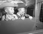 Kenny and Stanley Bennett of Arlington ride Leonard's Santa's Rocket Express in Leonard's Toyland, 12/20/1949.