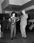 Third floor Christmas party. Seen is a young boy dressed as a cowboy. To the boy's right is Amon Carter. Multiple people are seen in the background.