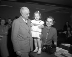 Third floor Christmas party. Amon Carter Sr. is seen with Mrs. Lee J Johnson III and the young girl.